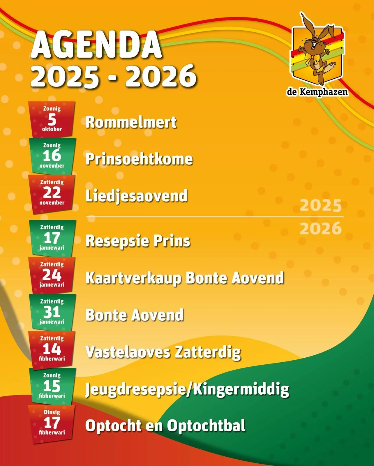Goot plannen is 't halve werk! Dus zit dees datums alvast in de agenda, vraog vrej bej de baas (en de daag d'r nao), regel unne babysit en leg de asprientjes mer vast op ut nachtkesje... Want ut wurd wer un seizoen veur in 't fotobook!